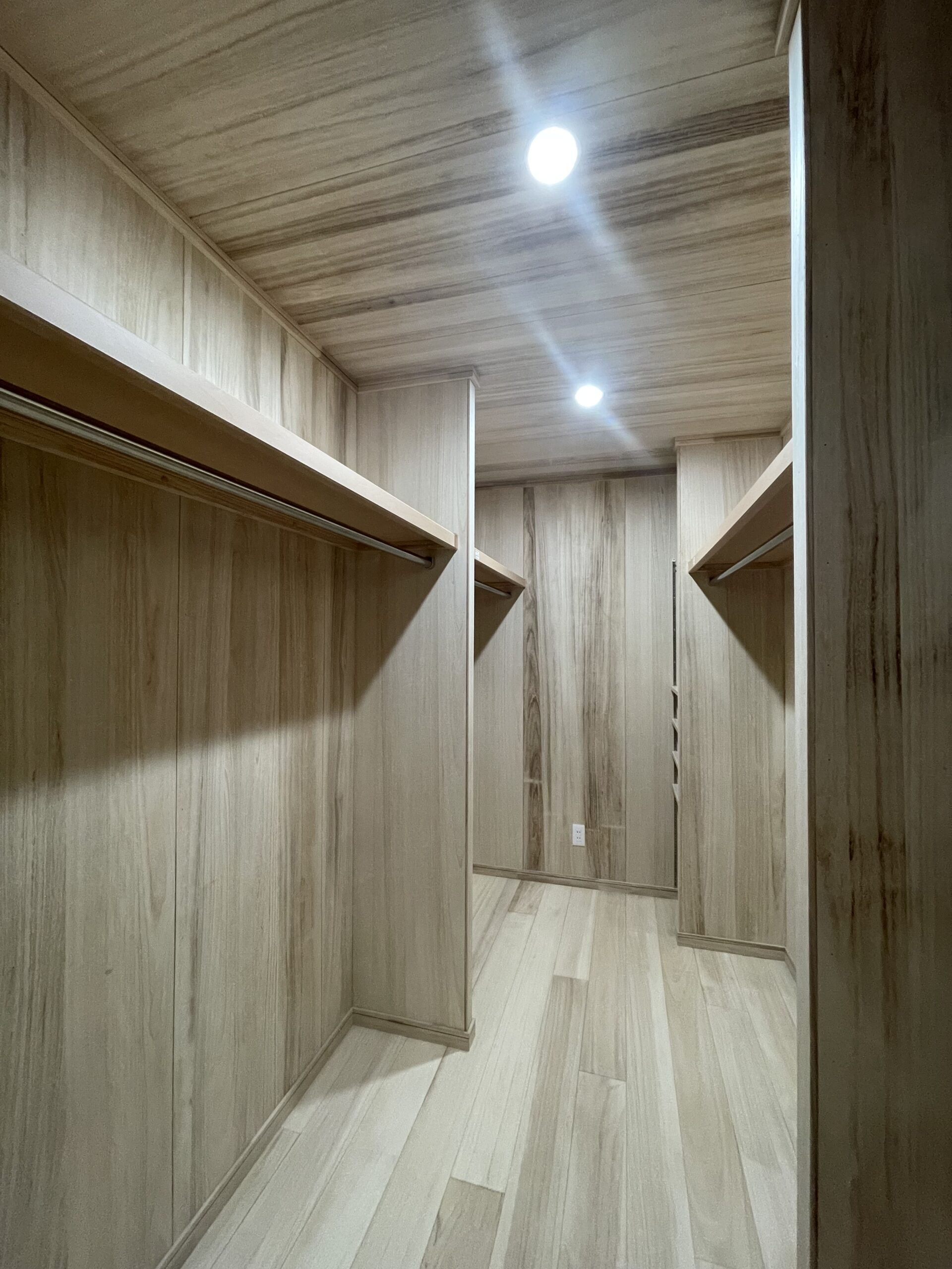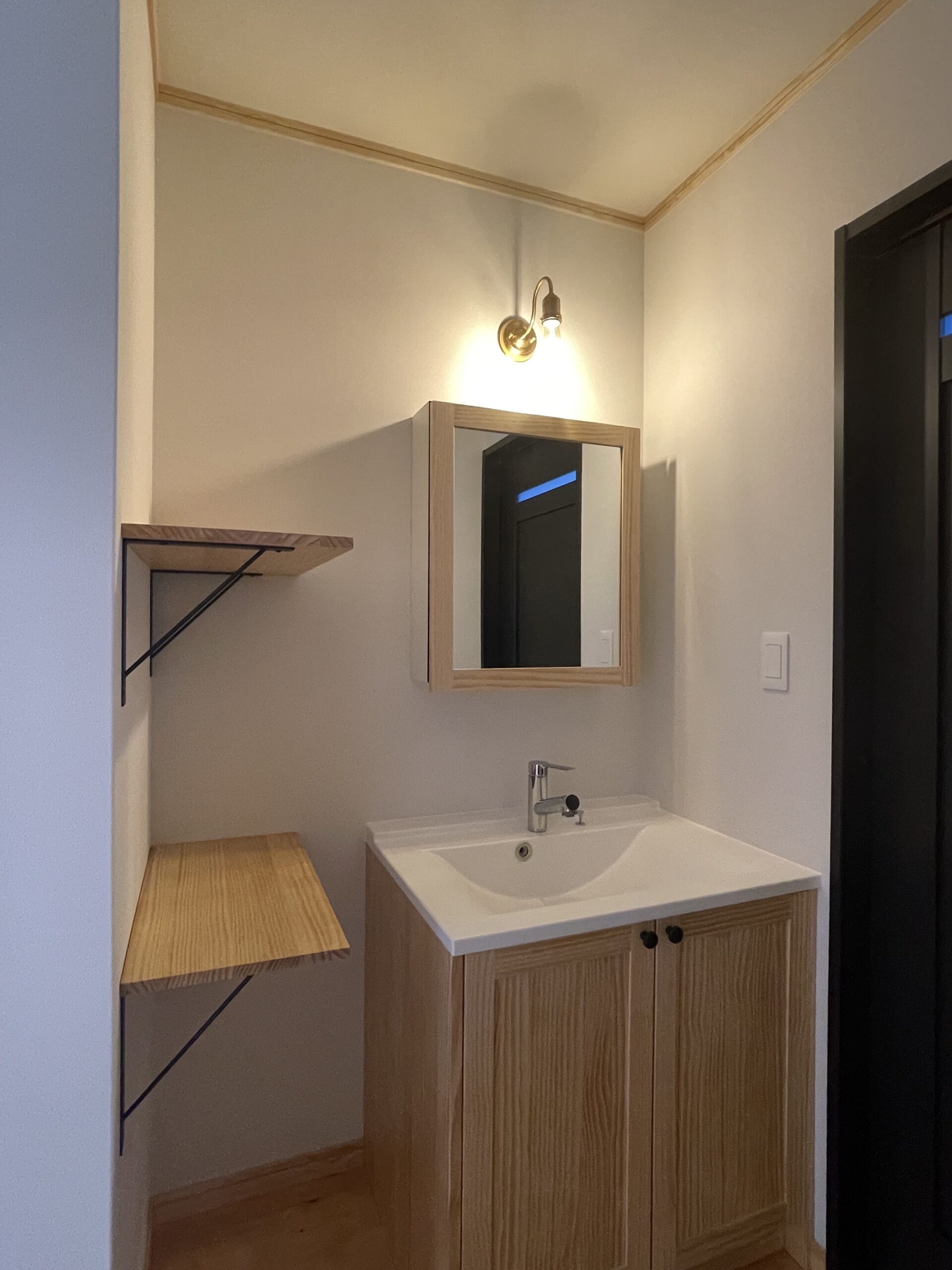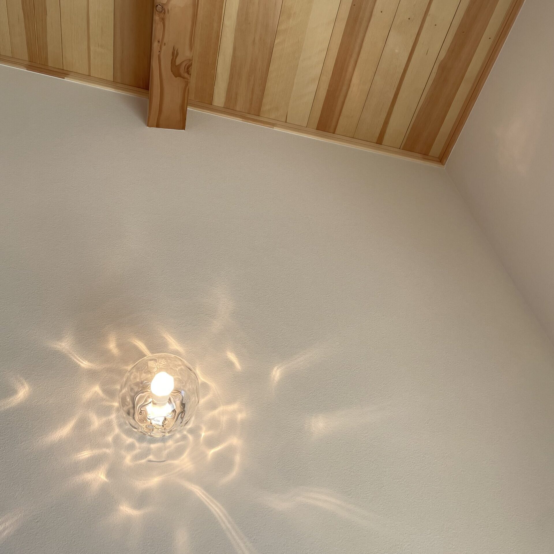 照明や壁紙など、細部にもこだわった無垢の木の家。