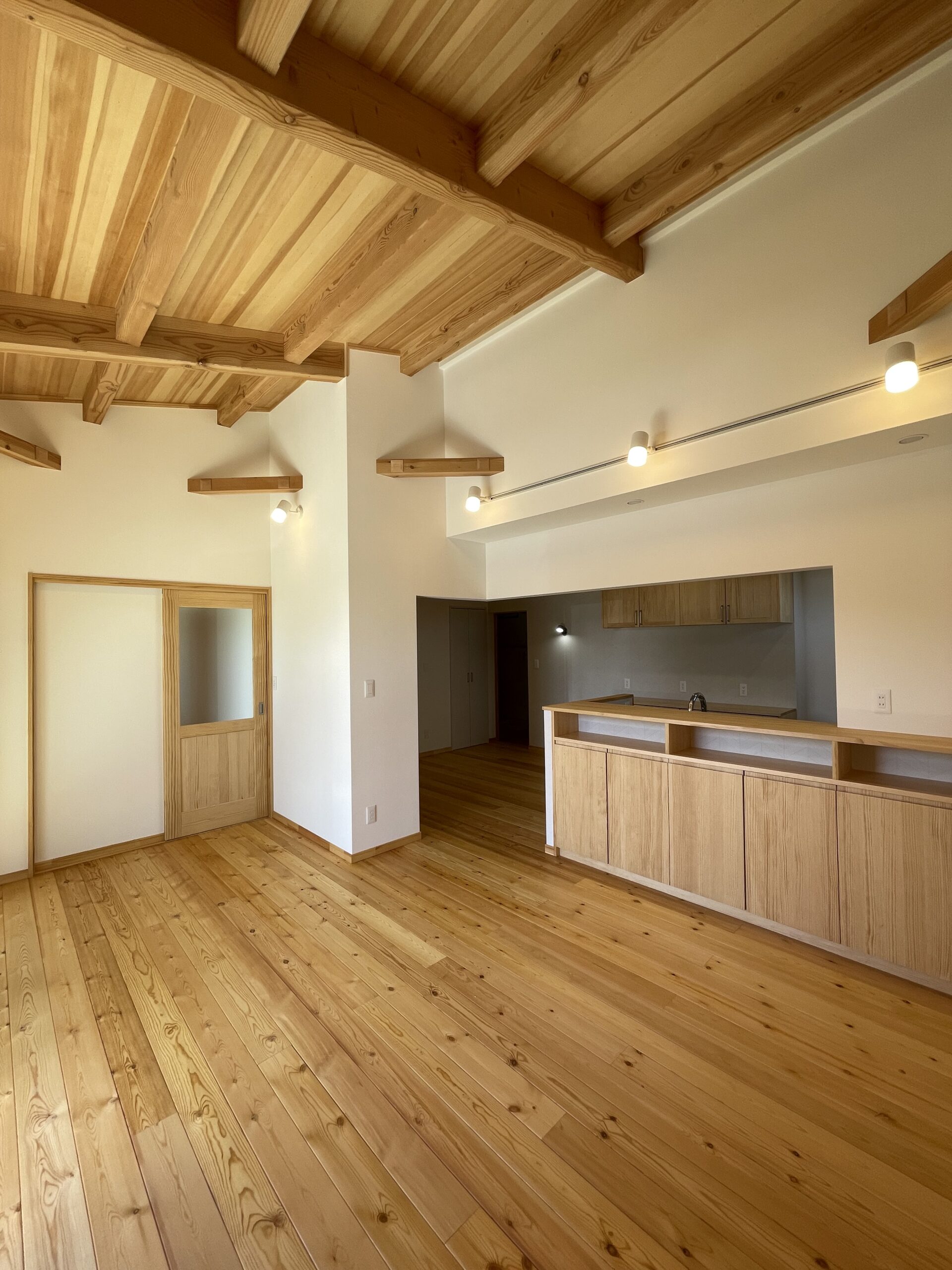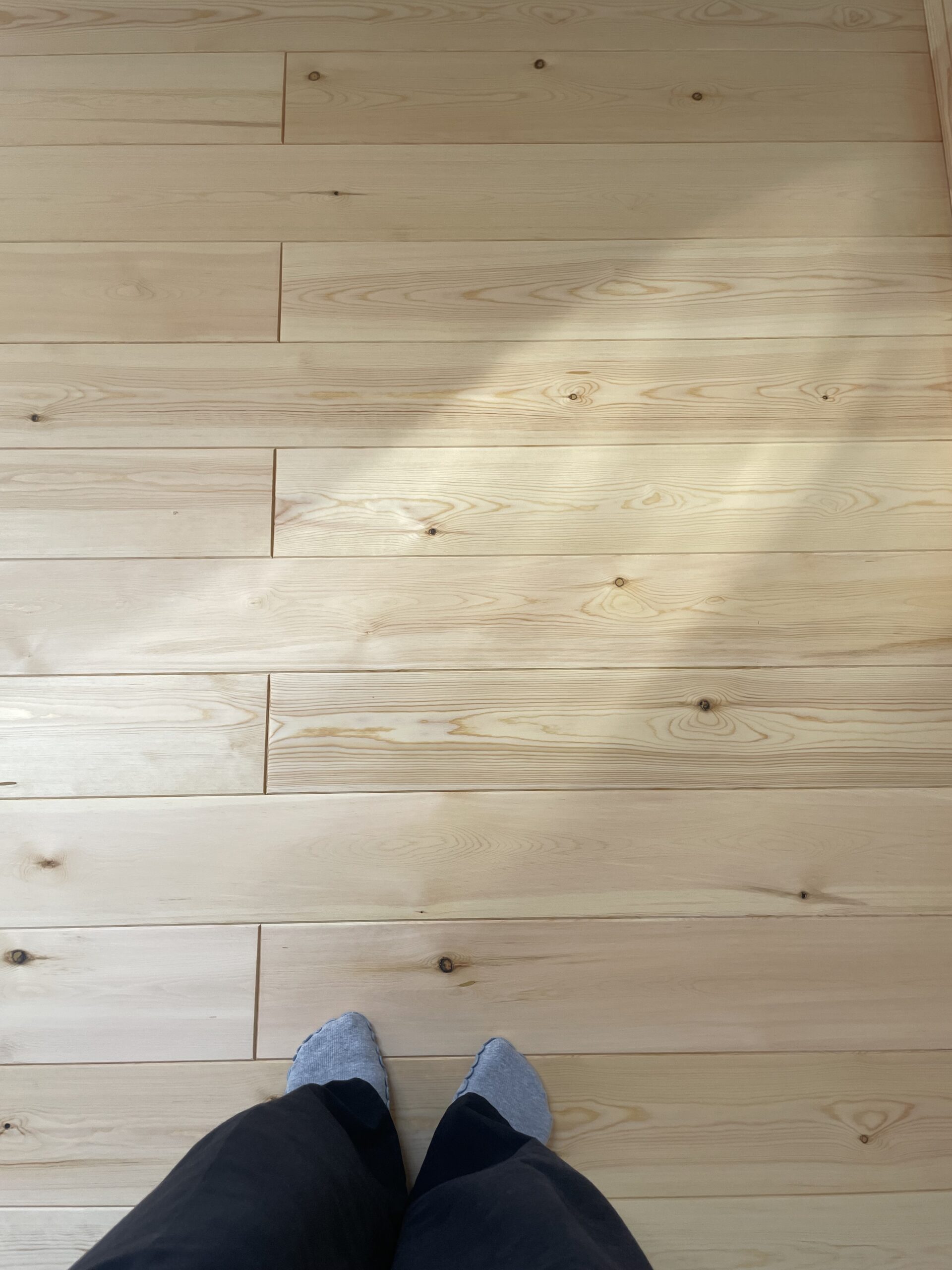 無垢の床は、ヒヤッとしないので冬でもあたたかく感じます。裸足になりたくなっちゃう床。